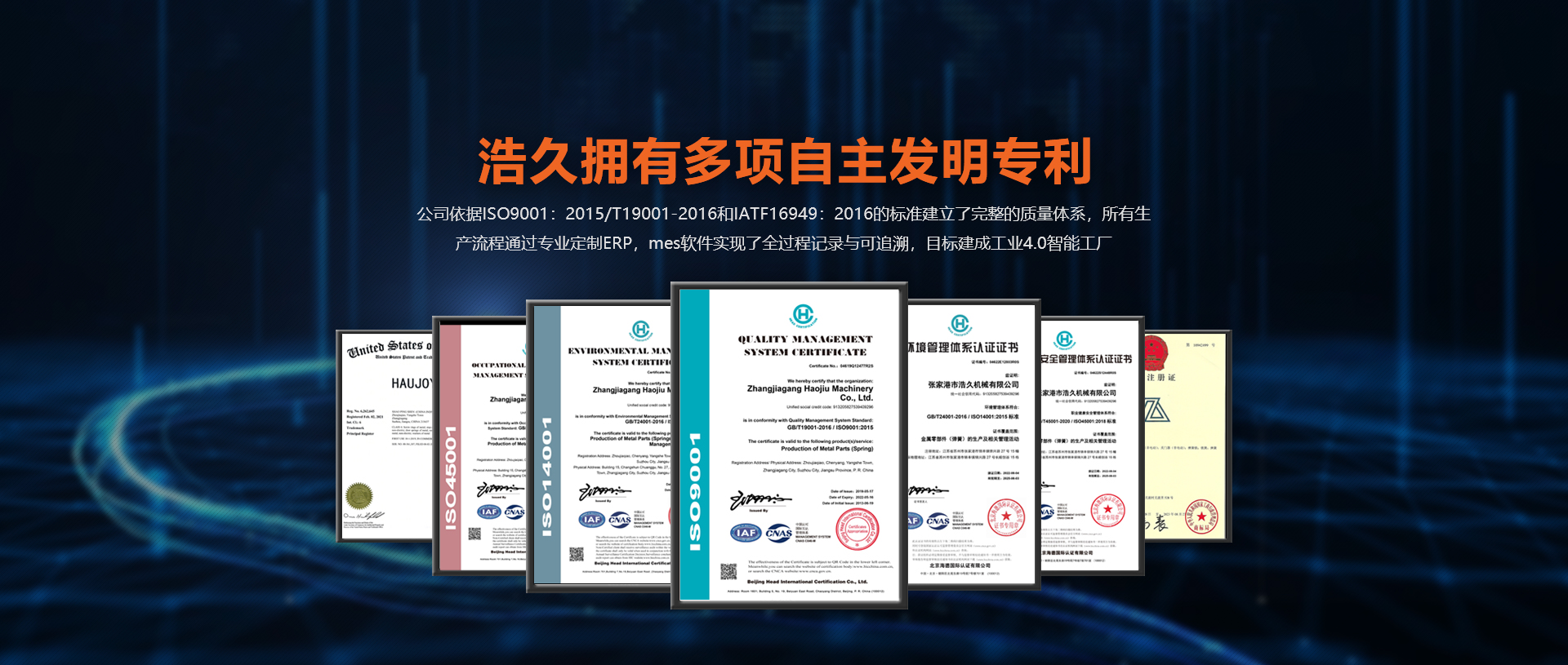 浩久擁有多項自主發(fā)明專利。公司依據(jù)ISO9001GB/T19001-2016和IATF:2016的標(biāo)準(zhǔn)建立了完整的質(zhì)量體系,所有生產(chǎn)流程通過專業(yè)定制ERP,mes軟件實(shí)現(xiàn)了全過程記錄與可追溯,目標(biāo)建成工業(yè)4.0智能工廠。